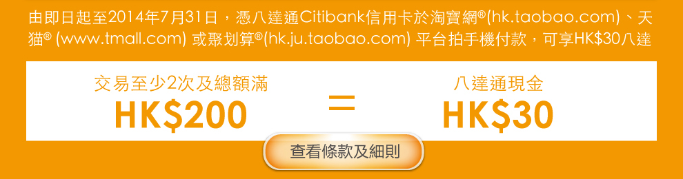 淘寶 x Citibank八達通信用卡優惠 (6月12日-7月31日)
