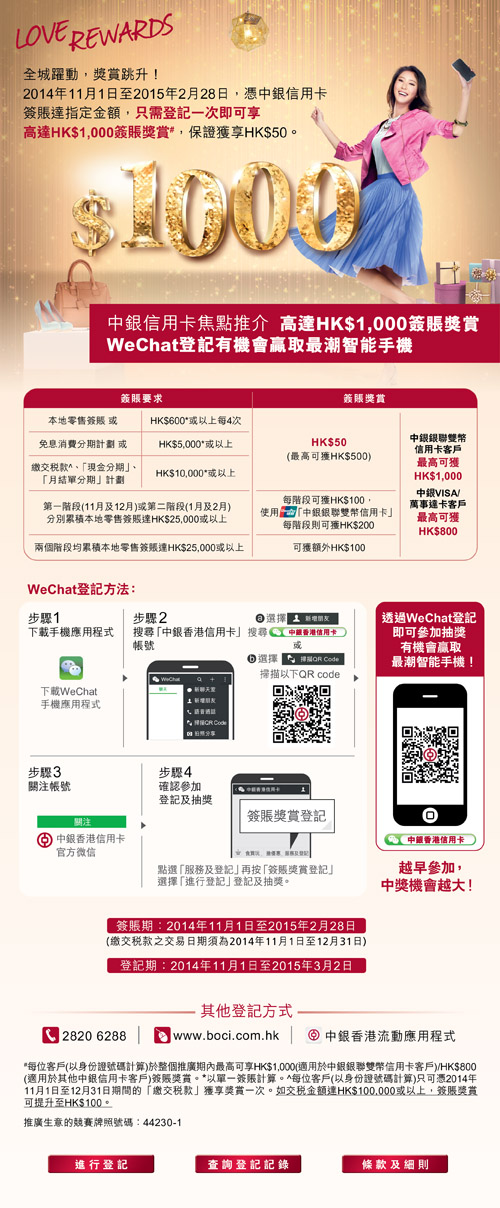 又到十一月,一月便到交薪俸稅季節,使用中銀信用卡,先在網頁上登記,交最少10,000元稅款,便有50元回贈,交100,000元,就有100元回贈。